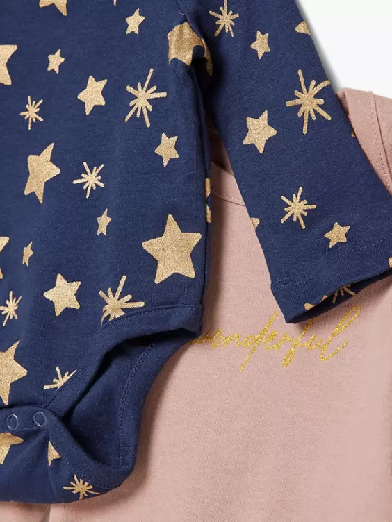 - blau mit gold glitzer allover Druck und rosa mit goldenen Druck auf der Vorderseite