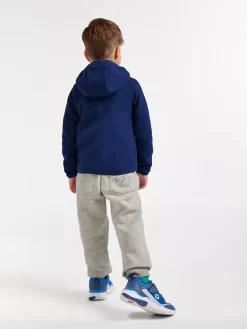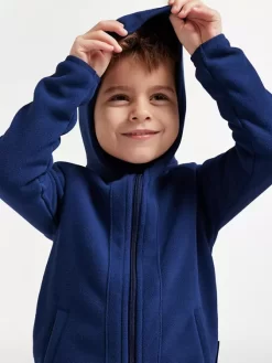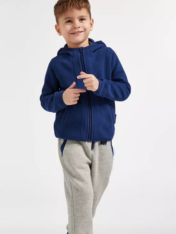 - blaue Fleecejacke mit Kapuze