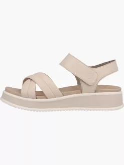 Coolness hoch drei – mehr Style, mehr Komfort, mehr Funktion! Mit diesen coolen, cremebeigen Damen-Sandalen von Rieker EVOLUTION aus Glattleder gehst du flott durch die Saison. Ein Klettverschluss ermöglicht einen schnellen und bequemen Einstieg. Die schockabsorbierende und sehr leichte Sohle mit dem extra weichen Fußbett sorgt für angenehmen Tragekomfort. R-EVOLUTION of shoes!